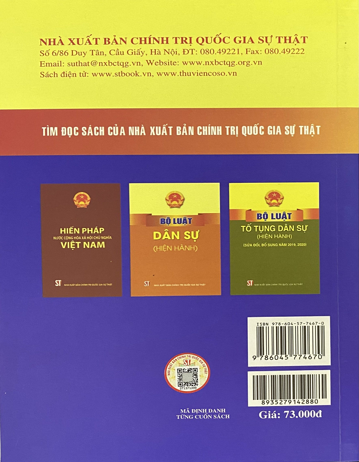 Tác giả: Nhiều tác giả Nhà xuất bản: Chính trị quốc gia sự thật Chiều dài: 21cm Chiều rộng: 15cm Chiều cao: 3cm Số trang: 348 trang Sách Luật Tố Tụng Hành Chính