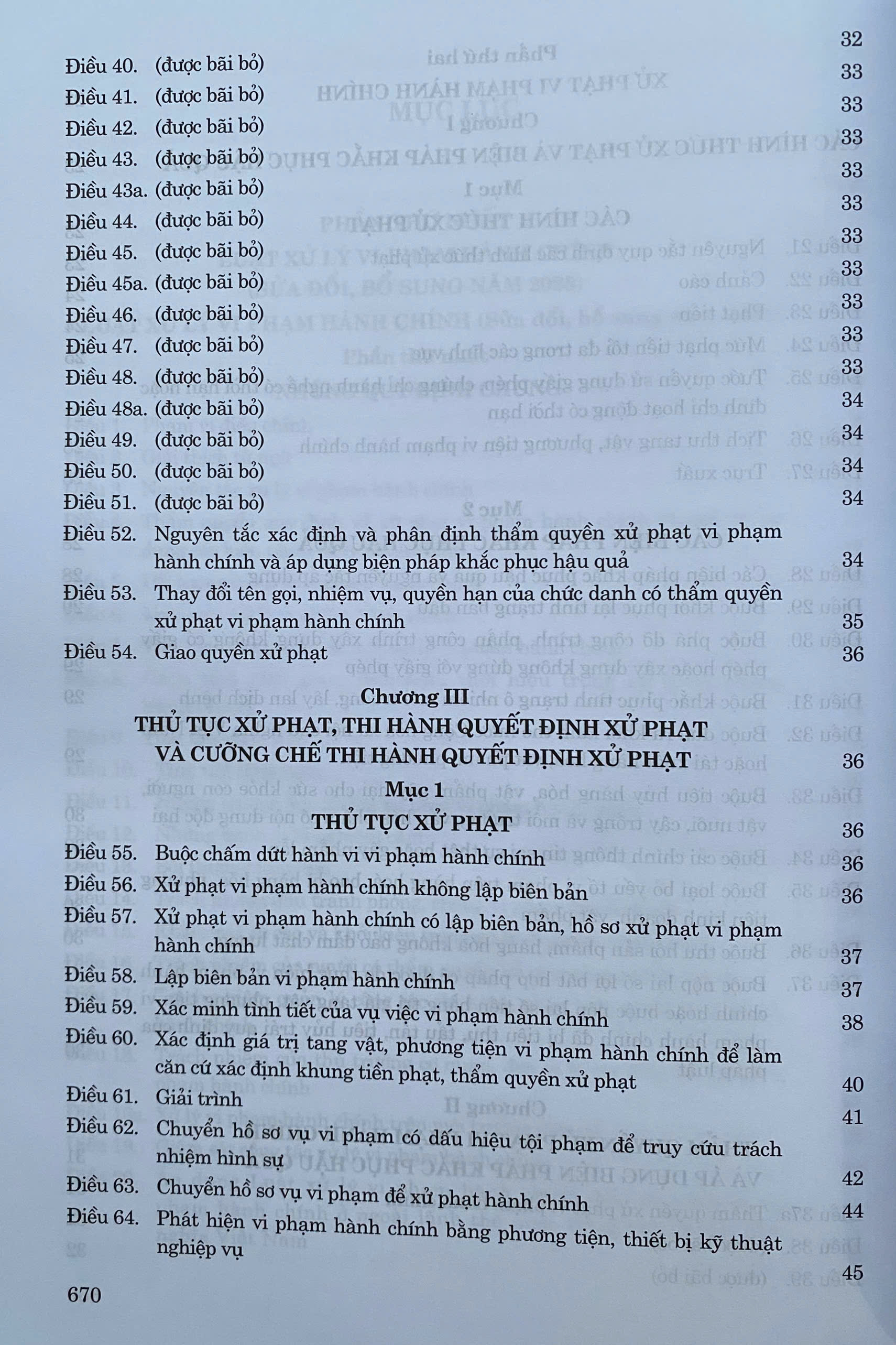 Luật xử lý vi phạm hành chính (Luật số 15/2012/QH13) được Quốc hội nước Cộng hòa xã hội chủ nghĩa Việt Nam khóa XIII thông qua ngày 20 tháng 6 năm2012 và có hiệu lực từ ngày 01 tháng 7 năm 2013. Để bảo đảm phù hợp với tình hình thực tiễn, Luật Xử lý vi phạm hành chính đã được sửa đổi, bổ sung nhiều lần. Ngày 25 tháng 6 năm 2025, tại Kỳ họp thứ 9, Quốc hội nước Cộng hòa xã hội chủ nghĩa Việt Nam khóa XV đã thông qua Luật sửa đối, bố sung một số điều của Luật Xử lý vi phạm hành chính. Việc thay đối quy định của Luật Xử lý vi phạm hành chính đã dẫn đến quá trình thay đổi rất nhiều các nghị định có liên quan. Với mục tiêu kịp thời cập nhật, phổ biến những thay đổi và dễ dàng tra cứu, thuận tiện sử dụng cho bạn đọc.
