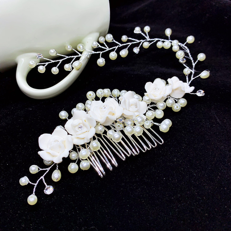 ✨Lược cài tóc hoa trắng trang điểm cô dâu, dạ tiệc