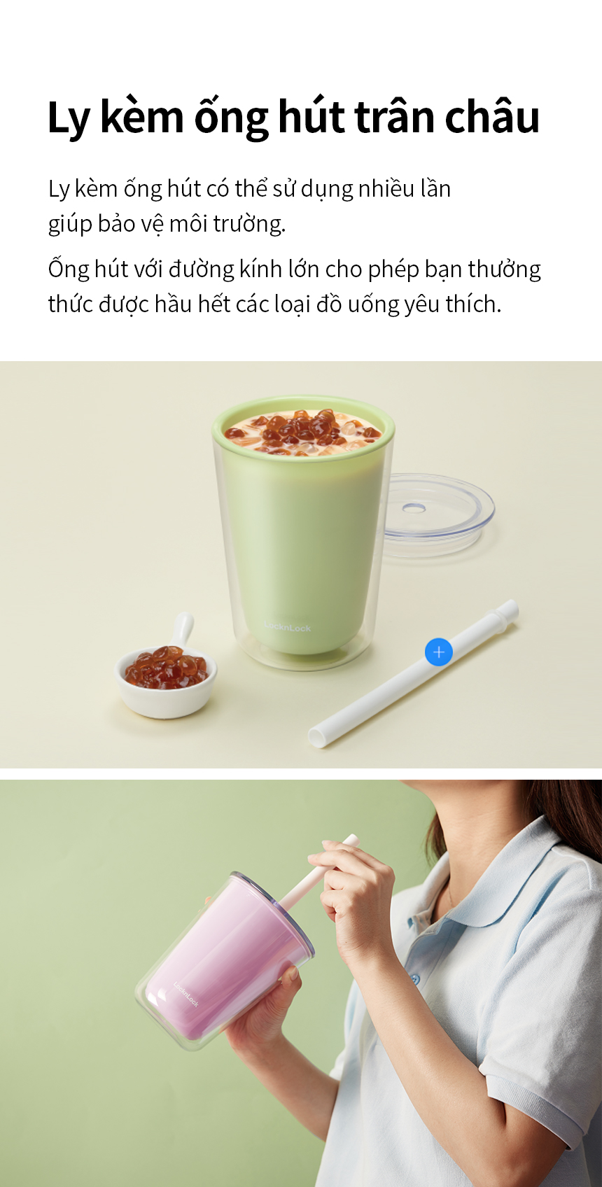 Ly nhựa 2 lớp LocknLock Bubble Tea Cold Cup HAP529 720ml, Hàng chính hãng, kèm ống hút trân châu - JoyMall THÔNG TIN SẢN PHẨM: Chất liệu: Thân ly và nắp: Nhựa AS Ống hút: