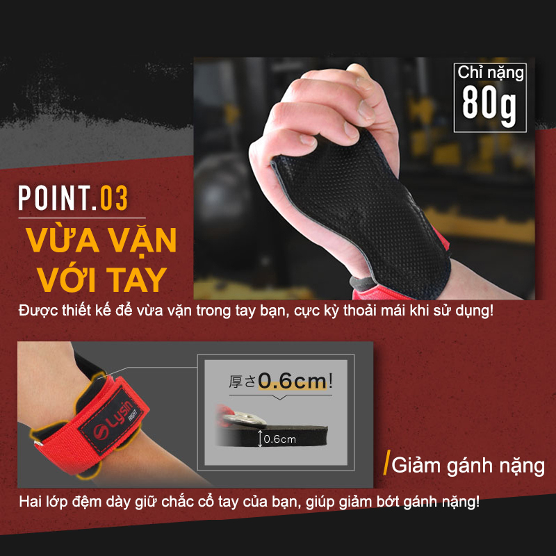 ✨Lysin - đai hỗ trợ cổ tay, lòng bàn tay chất liệu da Pu thoáng khí, chống trượt,găng tay tậm gym tập chuyện nghiệp dây kéo lưng lifting straps tập gym deadlift kéo xà nâng tạ