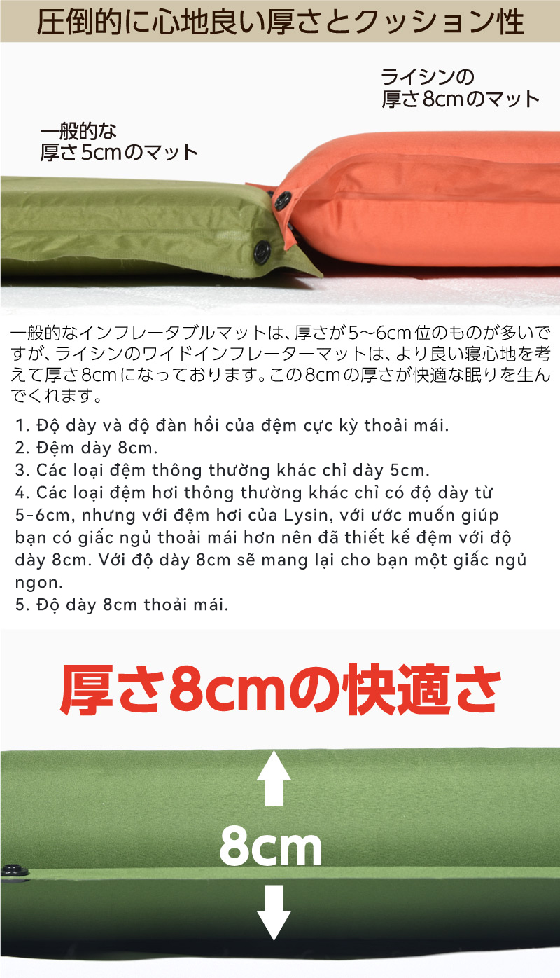 ✨Lysin - đệm nằm dã ngoại (rộng 70cm dày 8cm, chất liệu polyetylen) tự bơm hơi thoảng mái chống thấm nước cắm trại ngoài trời, picnic, du lịch camping có thể liên kết với nhau