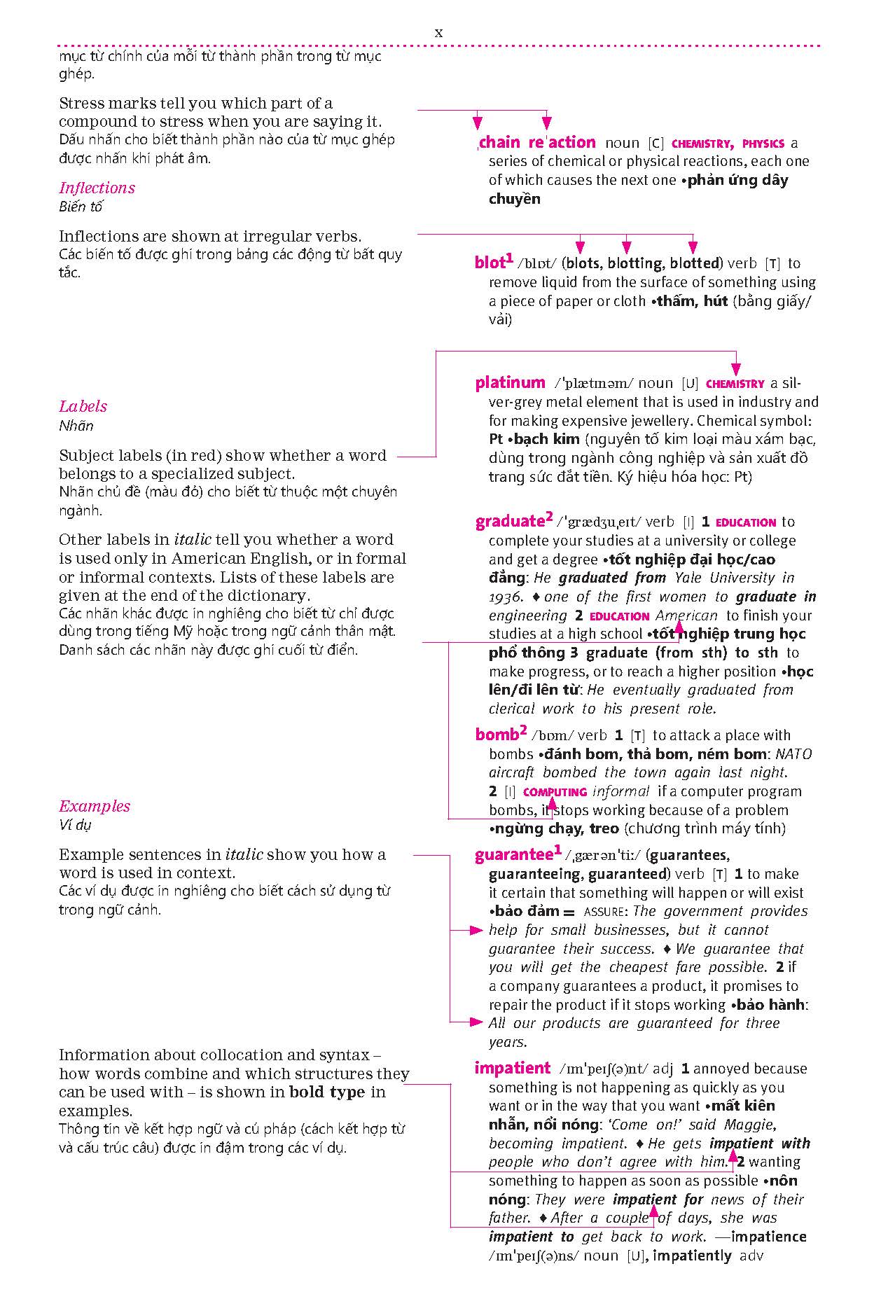 According to the research and evaluation of educators and experienced experts, Macmillan School Dictionary is unique for its exceptional design, especially the contents – comprise of advice and advanced explanations of teachers, coursebook developers, and Macmillan Corpus – a huge vocabulary database with over 20 million words, covering on hundreds of coursebooks and examinations in every topic, from agriculture to zoology.