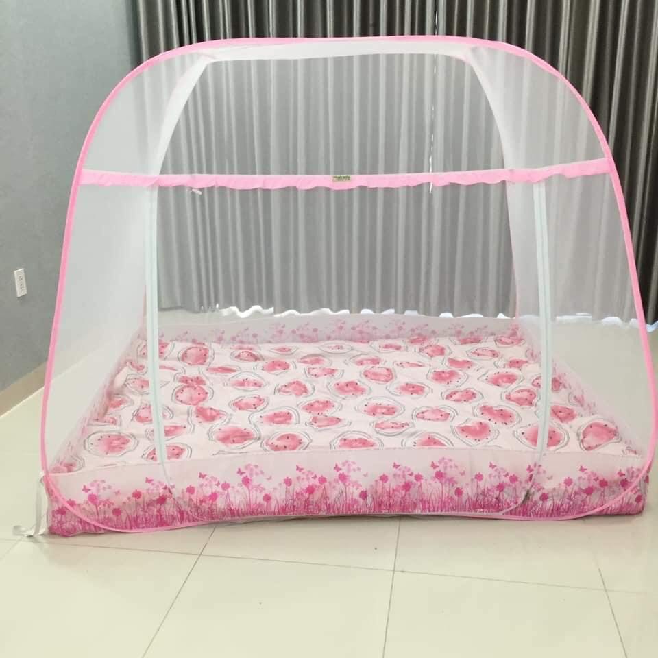 MÀN CHỤP , MÙNG CHỤP CAO CẤP MỘC MIÊN ĐỈNH RỘNG : Màn chụp tự bung cao cấp Mộc Miên đỉnh rộng trắng viền hồng loại 1,6m x2m - 3 cửa : Xuất xứ :