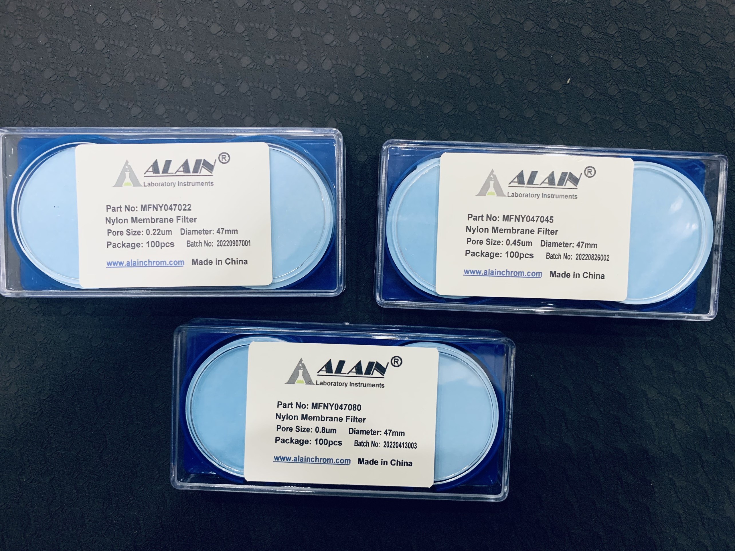 Màng lọc Nylon, đường kính 47mm, lỗ lọc 0.8um, (Hộp 100 tấm) mã MFNY047080, hiệu Alain - TQ