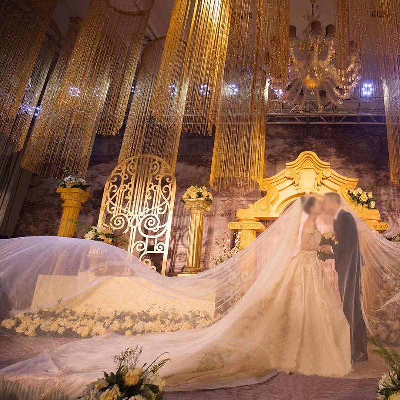 • Ví dụ: bạn mua 1 tấm rèm 3m sẽ làm được 1 rèm cửa 1m5-2m Rèm cửa sợi kim tuyến là một loại rèm được thiết kế độc đáo với các sợi kim tuyến lấp lánh, nổi bật được quấn xen vào sợi rèm dù làm cho không gian của bạn thêm bắt mắt, ấn tượng hơn.   Sợi rèm chất liệu dù bền đẹp thường được dùng làm rèm che chắn cửa ra vào, rèm trang trí cửa sổ, rèm ngăn phòng khách, rèm ngăn giường spa. Đặc biệt với những sợi nhỏ liti lấp lánh, loại rèm này còn được sử dụng nhiều trong trang trí phông rạp cưới  Rèm kim tuyến đã được dệt ống để bạn luồn thanh treo hoặc dây treo lên cửa   Rèm sợi kim sa sẽ đem đến vẻ đẹp lãng mạn cho không gian phòng ngủ, sang trọng và hiện đại cho không gian phòng khách. Ngôi nhà sẽ trở nên ấm áp và sang trọng hơn với bộ rèm sợi đính kim tuyến lấp lánh dưới ánh sáng điện. Không gian spa được trang trí với loại rèm này cũng sẽ tạo nên không gian nhẹ nhàng thư giãn   Thường để sợi rèm dày đẹp như mẫu bạn có thể đẩy thu nhỏ mỗi tấm còn khoảng 0.5m  sẽ tạo độ dày cho rèm nhé   Lưu ý: Rèm cửa kim tuyến là rèm trang trí không phải là rèm cản sáng hay rèm cản nắng Đa dạng mẫu trang trí với rèm cửa sổ kim sa: