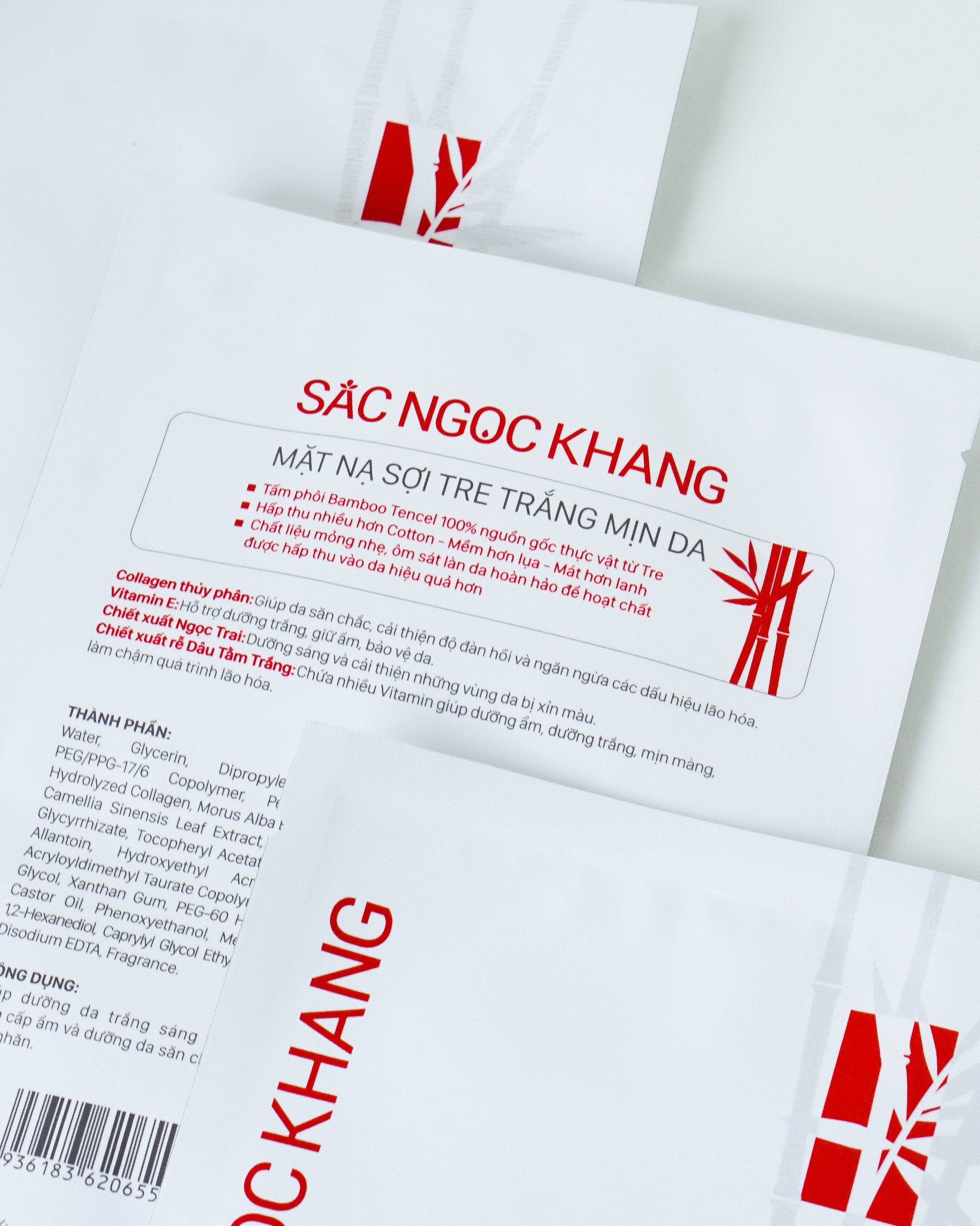 - Mặt nạ sợi tre trắng mịn da Sắc Ngọc Khang: 12 miếng/hộp, 1 miếng/hộp Lưu ý: