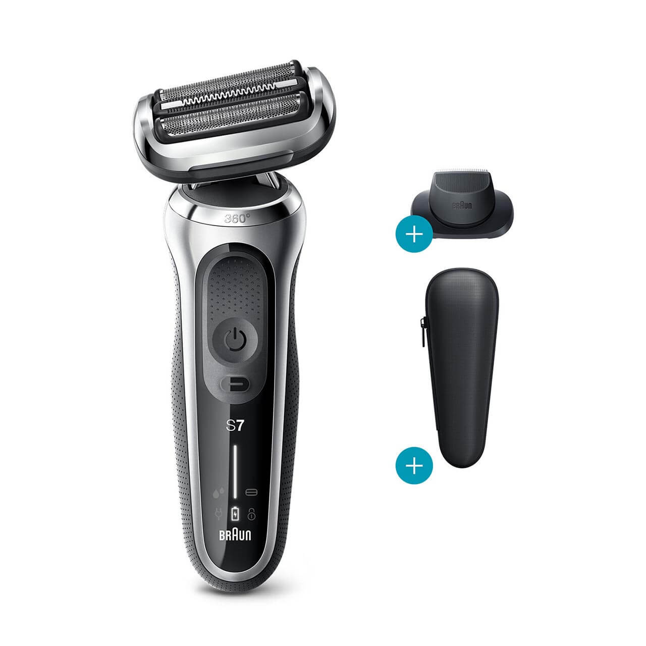 Trải nghiệm cạo sát, mạnh mẽ với Máy cạo râu điện Braun Series 7 Flex. Máy cạo râu dạng khô và ướt này có đầu tỉa râu Flex 360 độ mang lại khả năng tiếp