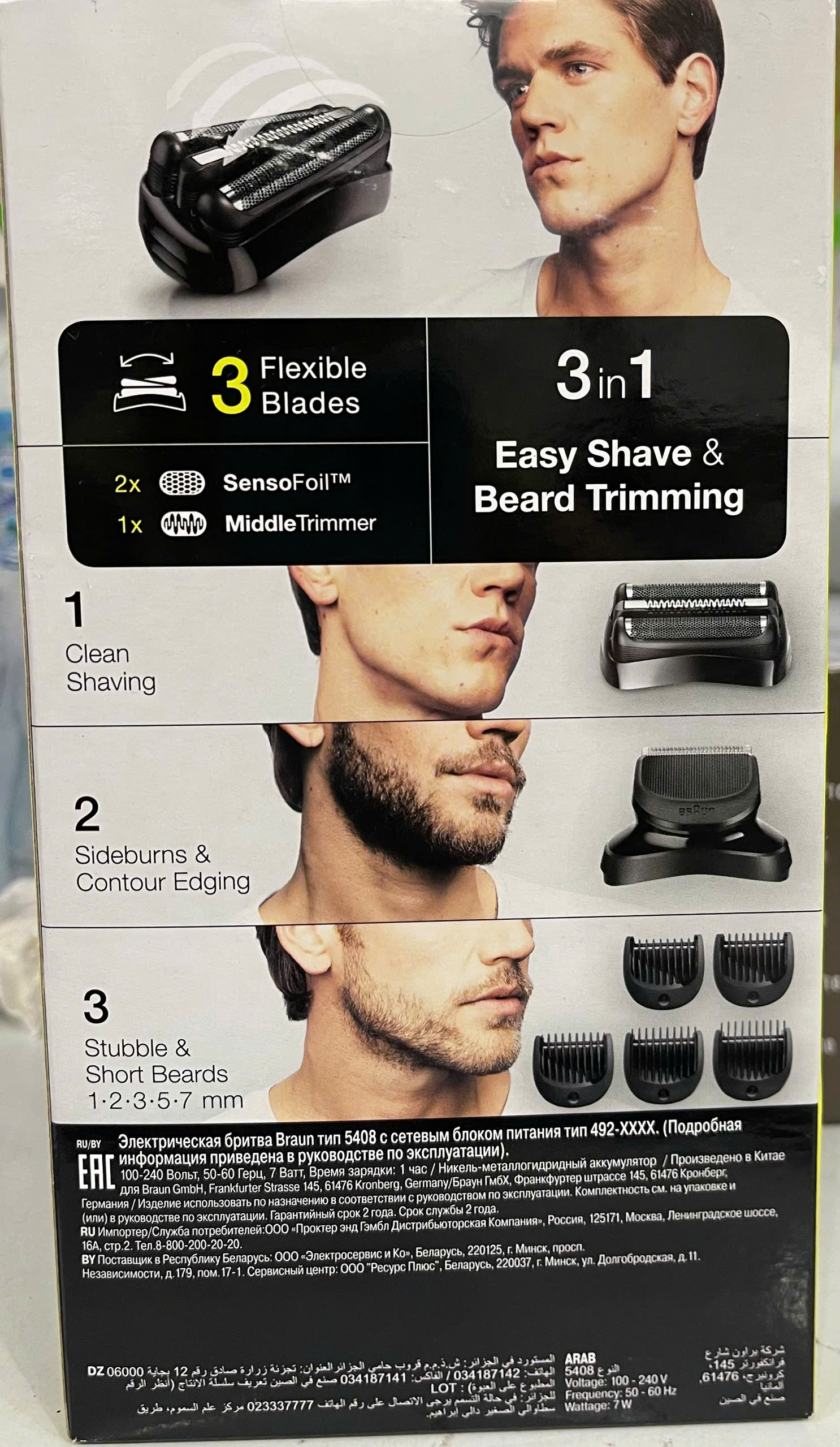 Máy cạo râu và tỉa râu không dây mạnh mẽ. Được phát triển và sản xuất bởi Braun tại Đức.