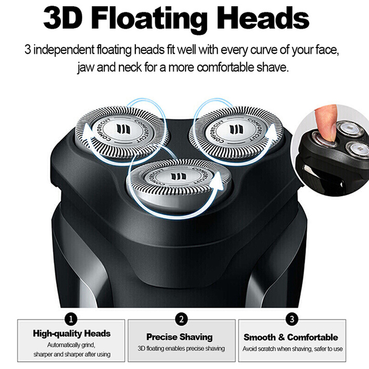 - Máy cạo râu dễ dàng vệ sinh đầu cạo râu bằng nước (Không rửa cả máy với nước). Có thể cạo râu khô hoặc cạo ướt với ít nước và kem cạo râu. 3 lưỡi cạo cao cấp: