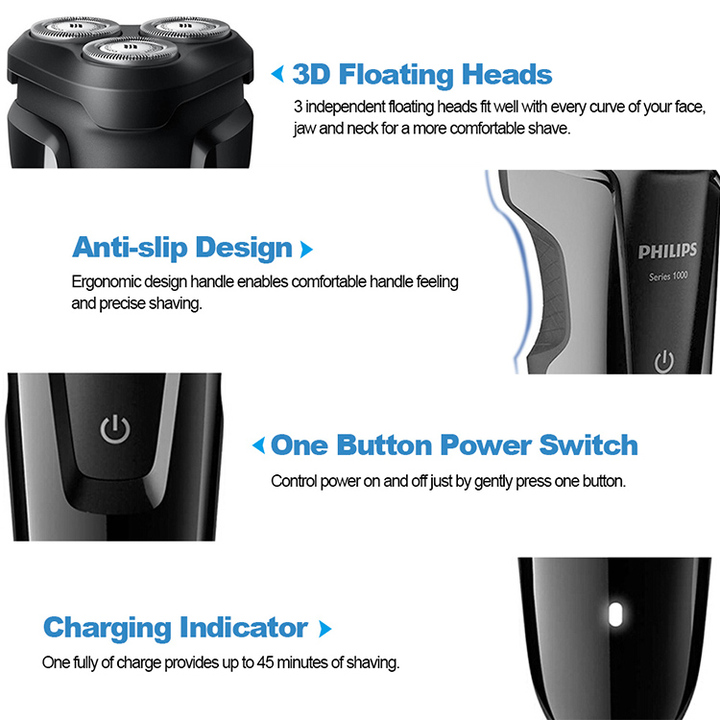 ✨Máy cạo râu khô và ướt 3 lưỡi Philips S1010, sử dụng pin NiMH, đầu cắt chống nước dễ dàng vệ sinh- Hàng chính hãng