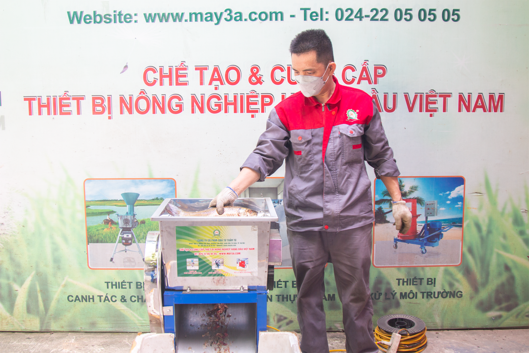 Để giúp các hộ chăn nuôi ba ba, cá chim, cá trê,… thái nhỏ các loại thức ăn như: cá mè nhỏ, cá tép dầu, cá lành canh, giun, ốc, ếch và phế phẩm từ