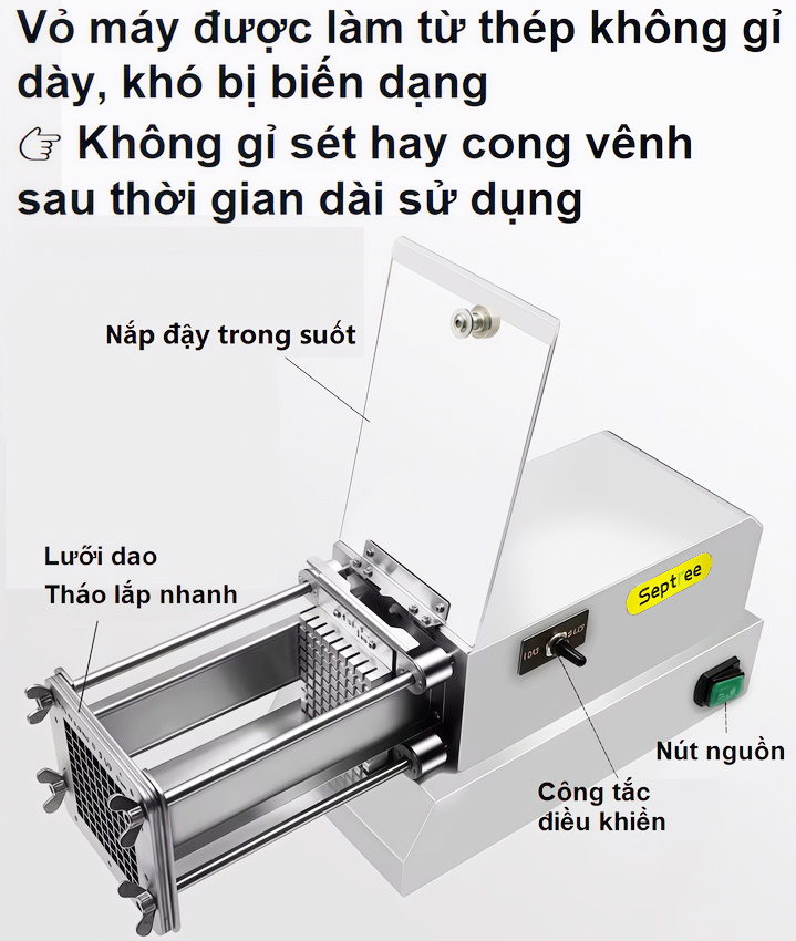 Máy cắt khoai tây, khoai lang và các loại củ kiểu Pháp chuyên nghiệp Septree T1000