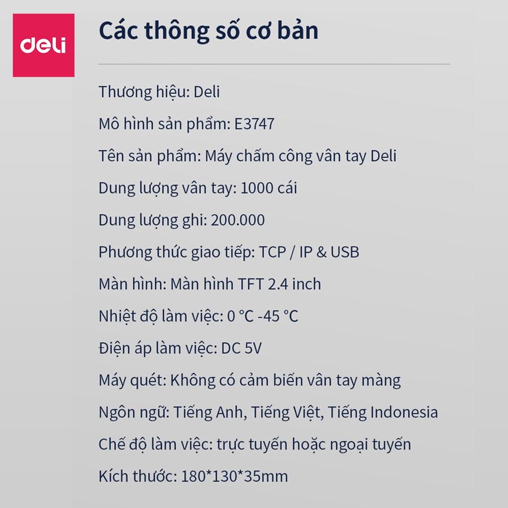✨Máy Chấm Công Quét Vân Tay Hàng Chính Hãng Deli - Độ Chính Xác Cao, Kết Nối USB - Dung Lượng Lưu Trữ Gấp Đôi - E3747PRO