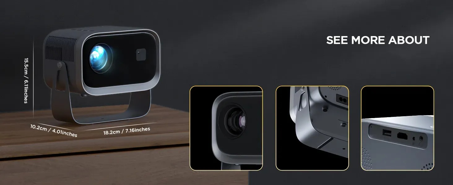 MÁY CHIẾU YABER V10 FULL-HD 1080p hệ điều hành ANDROID Lấy cảm hứng từ những loạt phim về vũ trụ, máy chiếu Yaber V10 lần đầu tiên áp dụng thiết kế theo phong cách không