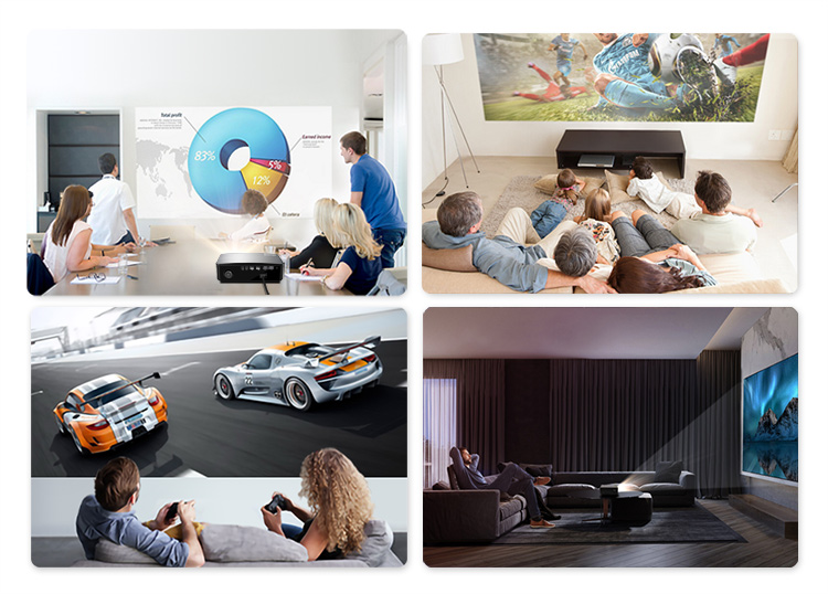 - Chơi game, xem phim, xem bóng đá, nghe nhạc, trình chiếu karaoke tại gia đình - Chiếu lên đến 230 INCH, gấp 20 so với TV 50 inch - Kết nối USB, ổ cứng