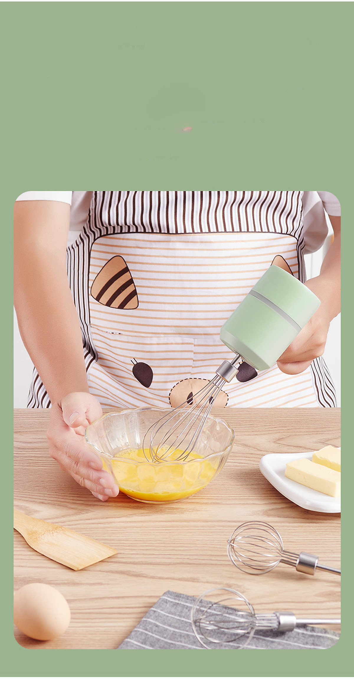 Đi kèm 2 que trộn inox có thể tháo rời để vệ sinh rất dễ dàng và 1 vợt tách lòng đỏ