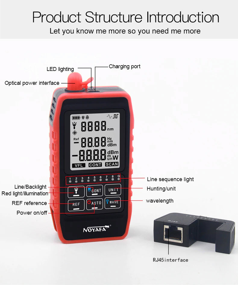 Mua tại TiktokMáy Đo Công Suất Quang Và Test Cáp Mạng NOYAFA NF-908 (Dùng Pin Sạc) - Hàng Chính Hãng. NOYAFA NF-908 Multifunction Optical Power Meter Visual Fault Locator Network Cable Test Optical Fiber Tester Item Specifics: