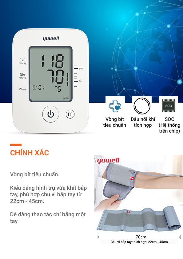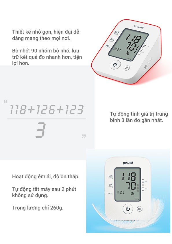 Mua tại TiktokĐo huyết áp là cách tự kiểm soát huyết áp của bản thân, đặc biệt là đối với những người có tiền sử bệnh huyết áp, người già có nguy cơ mắc bệnh tăng huyết áp. Vì vậy, việc đo huyết áp tại nhà có thể góp phần kiểm soát sự tăng/giảm huyết áp bất ngờ để phòng tránh các nguy cơ tai biến do huyết áp gây ra như tai biến mạch máu não, đột quỵ bằng việc điều chỉnh chế độ ăn uống, sinh hoạt cho hợp lý. Máy đo huyết áp điện tử bắp tay Yuwell YE660D: