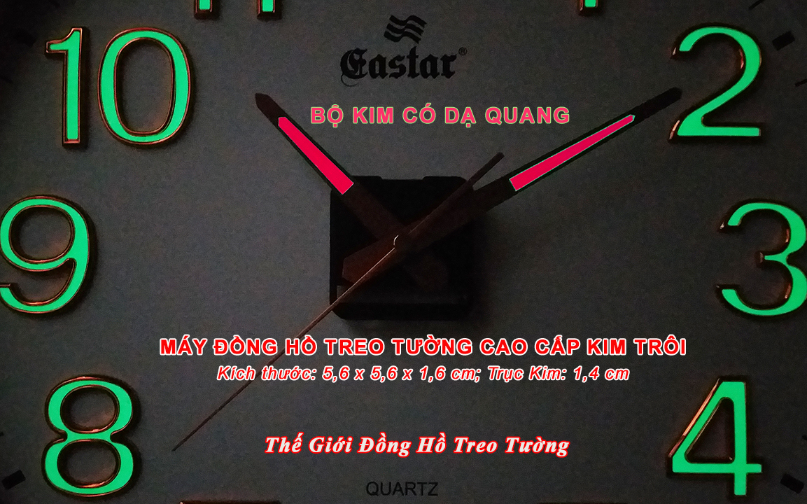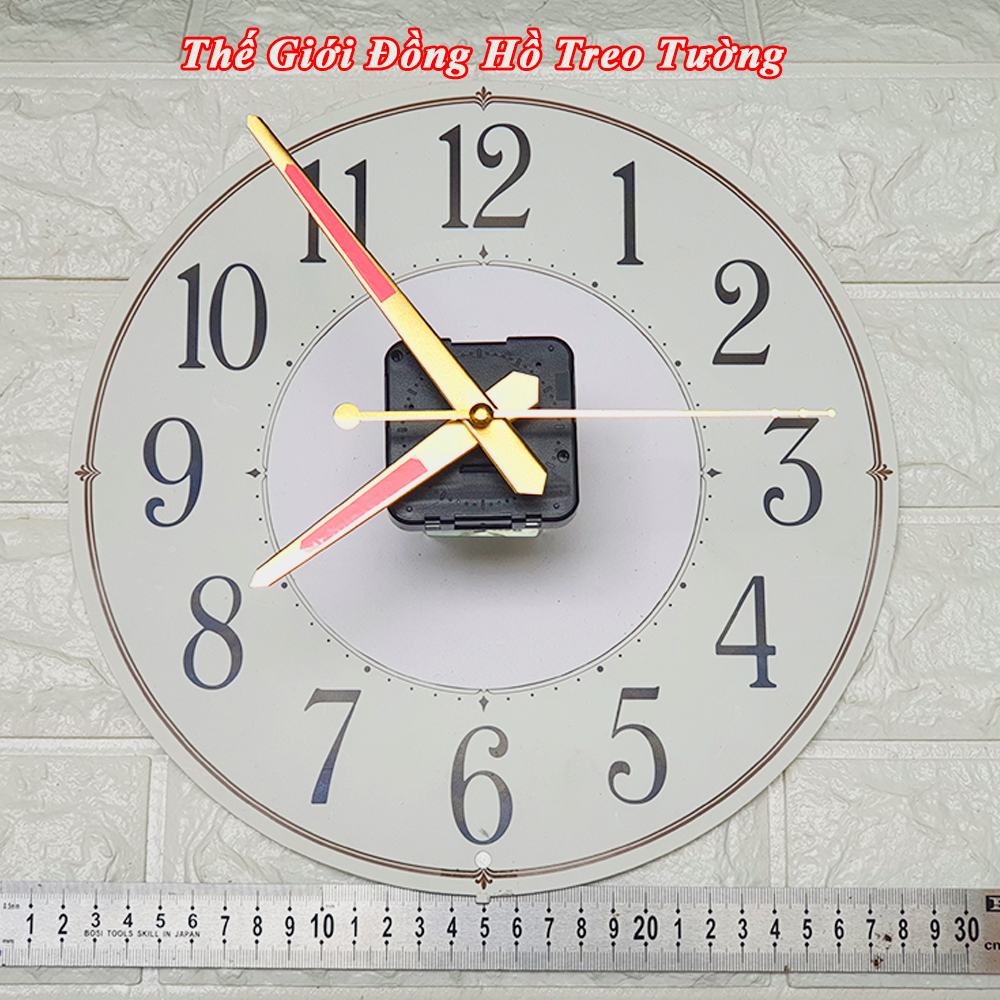 • Loại: Máy Đồng hồ Treo tường Kim dạ quang Công nghệ Thạch anh (Quartz) chạy kim (Analogue), Loại máy đồng hồ kim trôi chạy êm ái, không phát ra tiếng tíc tắc khi hoạt động.