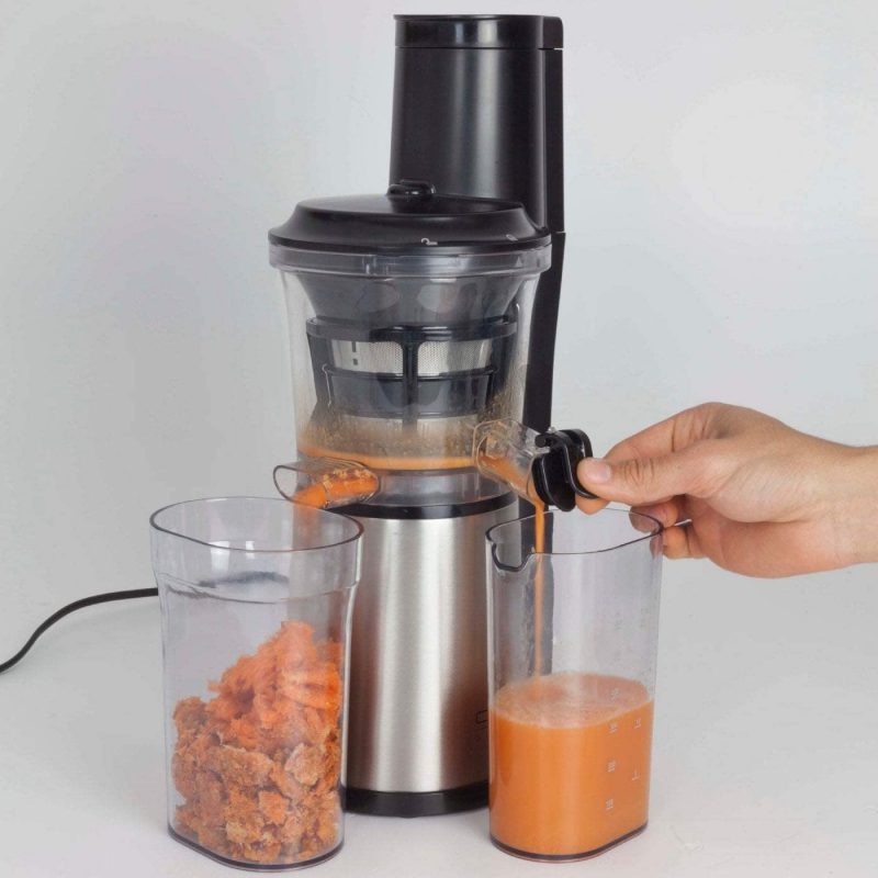 Ép kiệt hơn, giàu Vitamin và nhiều hương vị hơn! Đường kính khoang ép lớn lên đến 130mm, giúp ép nguyên quả dễ dàng mà không cần cắt nhỏ. Tốc độ quay chậm chỉ 40