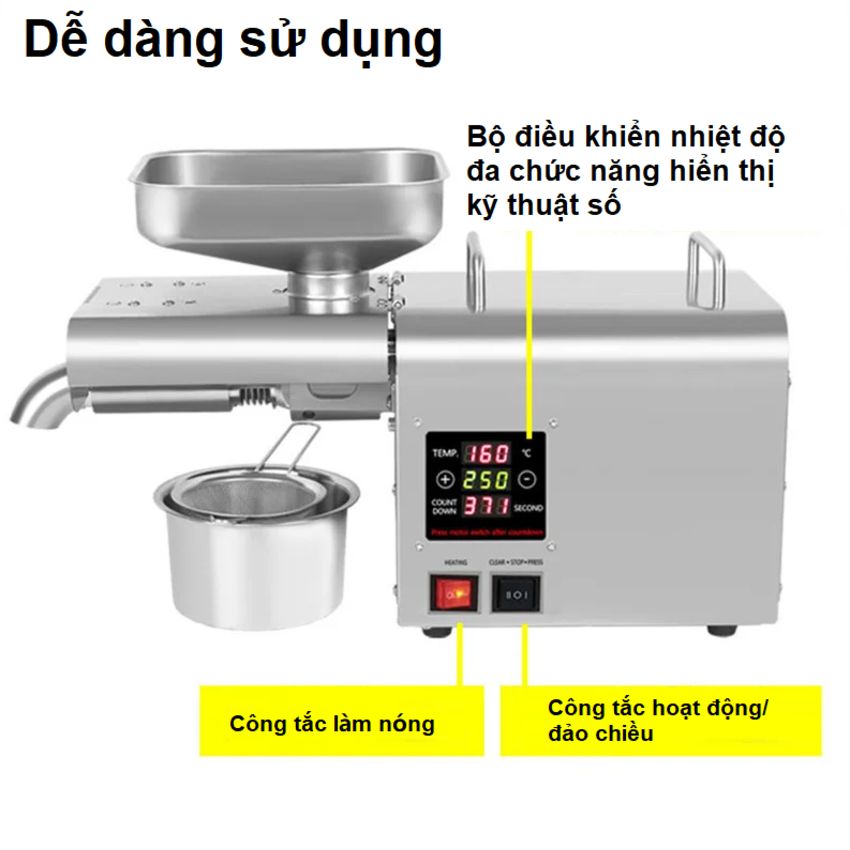• Thay vì phải mua dầu từ các nhà sản xuất hoặc siêu thị, tốn kém chi phí xăng xe và thời gian đi lại, người dùng có thể tự sản xuất dầu tại nhà cùng máy ép dầu thực vật với nguyên liệu tự chọn từ đa dạng các loại hạt khác nhau. Ưu điểm nổi bật của máy ép dầu thực: