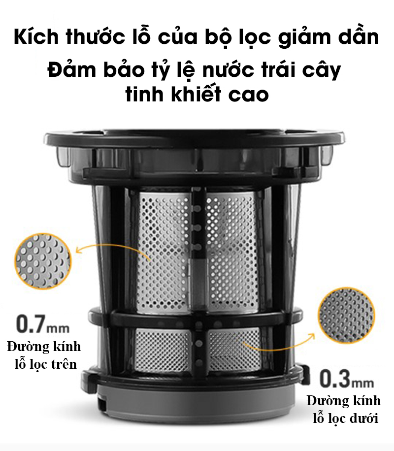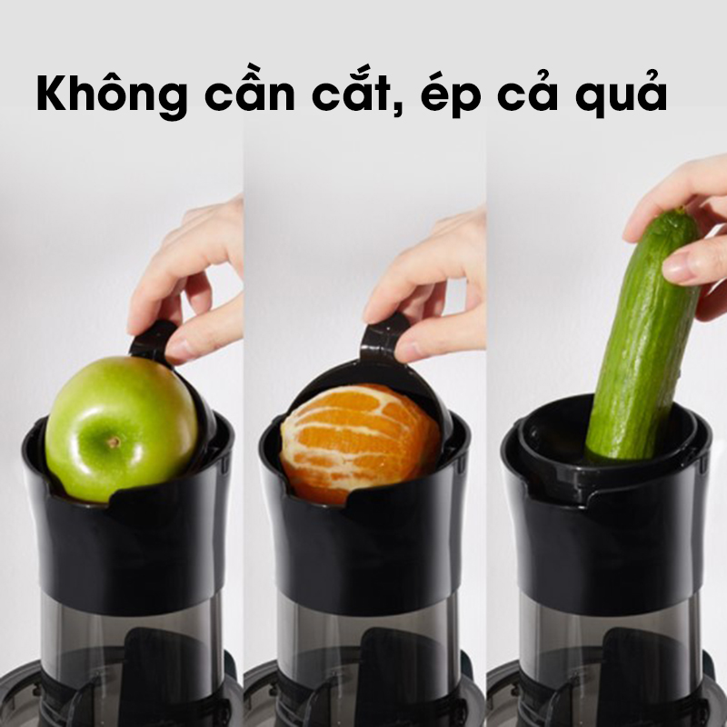 Ưu điểm nổi trội của máy ép chậm so với máy ép trái cây thông thường - Đường kính lớn 7.8cm, không cần cắt nhỏ, ép trực tiếp - Tỷ lệ nước ép nguyên chất