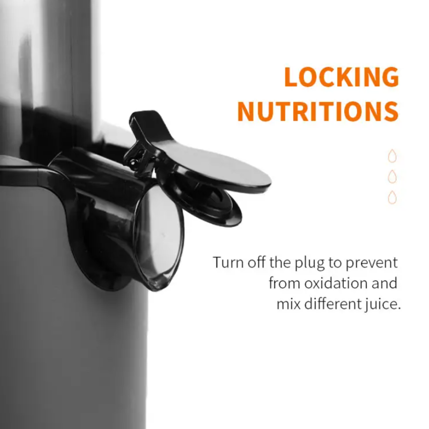 - Mỗi bộ phận riêng biệt của máy ép trái cây chậm đều thân thiện với máy rửa chén để làm sạch nhanh chóng. Khóa an toàn một chạm cho phép bạn tháo rời các bộ phận trong vài giây và rửa sạch trực tiếp.