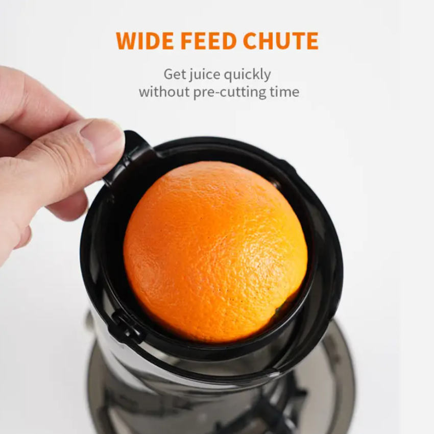 Ép kiệt hơn, giàu Vitamin và nhiều hương vị hơn! Đường kính khoang ép lớn lên đến 130mm, giúp ép nguyên quả dễ dàng mà không cần cắt nhỏ. Tốc độ quay chậm chỉ 40