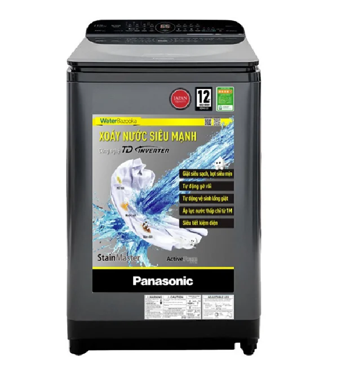 Đặc điểm nổi bật - Khối lượng giặt 12.5 kg thích hợp với gia đình có từ 7 thành viên trở lên. - Công nghệ TD Inverter tiết kiệm điện, nước hiệu quả. - Hệ thống bọt siêu mịn Active Foam dễ dàng mang đến quần áo tinh tươm. - Xoáy nước siêu mạnh Water Bazooka đem lại hiệu quả giặt mạnh mẽ, sạch tối ưu. - Công nghệ StainMaster giúp loại bỏ các loại vết bẩn khó giặt. - Chương trình giặt lưu hương lưu giữ hương thơm bền lâu. Tổng quan - Loại máy giặt:Cửa trên - Lồng giặt:Lồng đứng - Khối lượng giặt:12.5 Kg - Số người sử dụng:Trên 7 người - Kiểu động cơ:Truyền động gián tiếp (dây Curoa) - Tốc độ quay vắt tối đa:1400 vòng/phút - Chất liệu lồng giặt:Thép không gỉ - Chất liệu vỏ máy:Kim loại sơn tĩnh điện - Chất liệu nắp máy:Kính cường lực - Sản xuất tại:Việt Nam