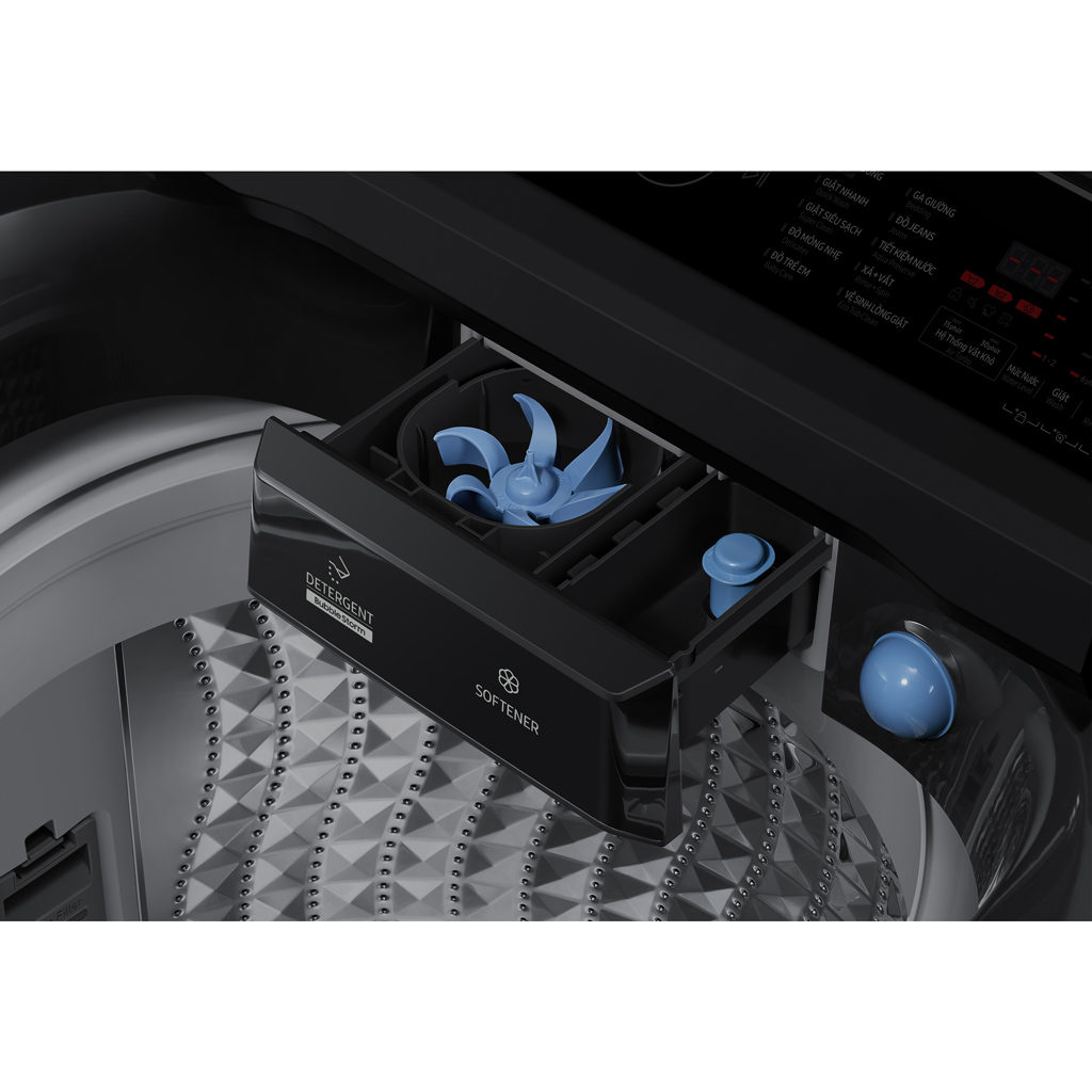 Đặc điểm nổi bật Tự động phân bổ nước giặt xả chính xác theo khối lượng đồ giúp tiết kiệm chất tẩy Ngăn chứa nước giặt xả lớn, chỉ cần đổ đầy 1 lần có