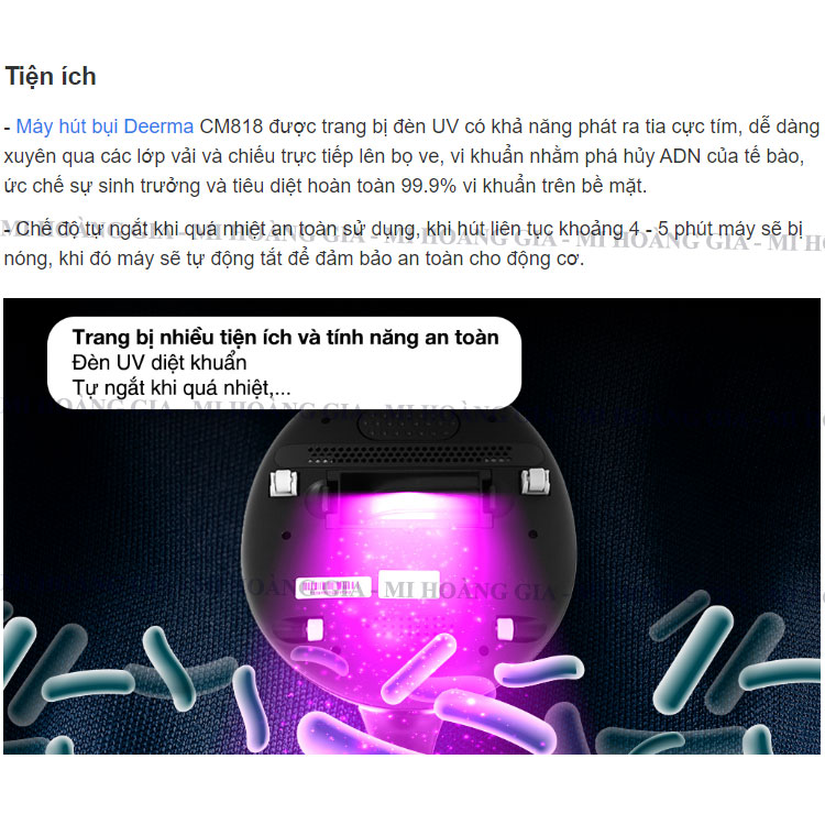 Mua tại TiktokMáy hút bụi đệm giường diệt khuẩn UV Deerma CM818 Tổng quan
