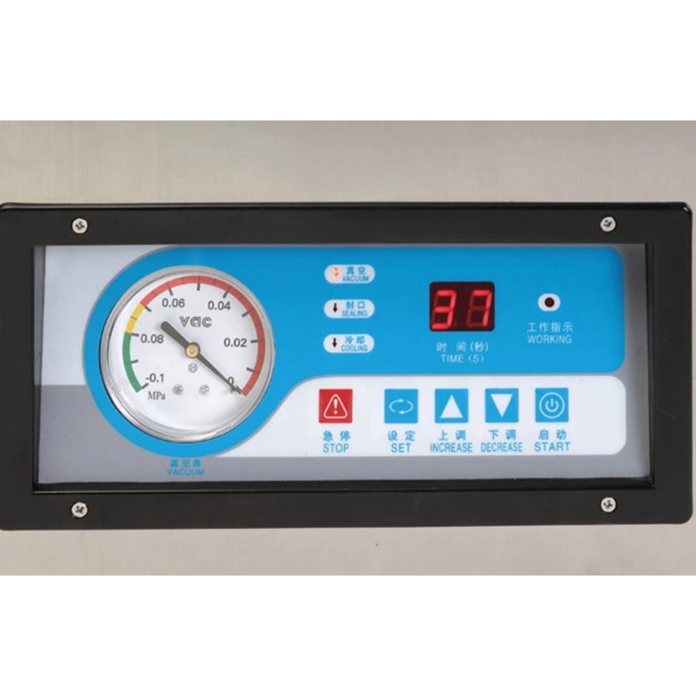 - Vỏ ngoài của máy được làm bằng thép không gỉ. Các thông số kỹ thuật cần thiết cho việc đóng gói sản phẩm có thể được lập trình trước. Khi nhấn nắp buồng hút chân không, toàn bộ quá trình đóng gói chân không được hoàn thành theo chương trình tự động. Nắp máy được làm bằng tấm mica trong suốt hoàn toàn giúp quan sát dễ dàng về quy trình đóng gói hút chân không.