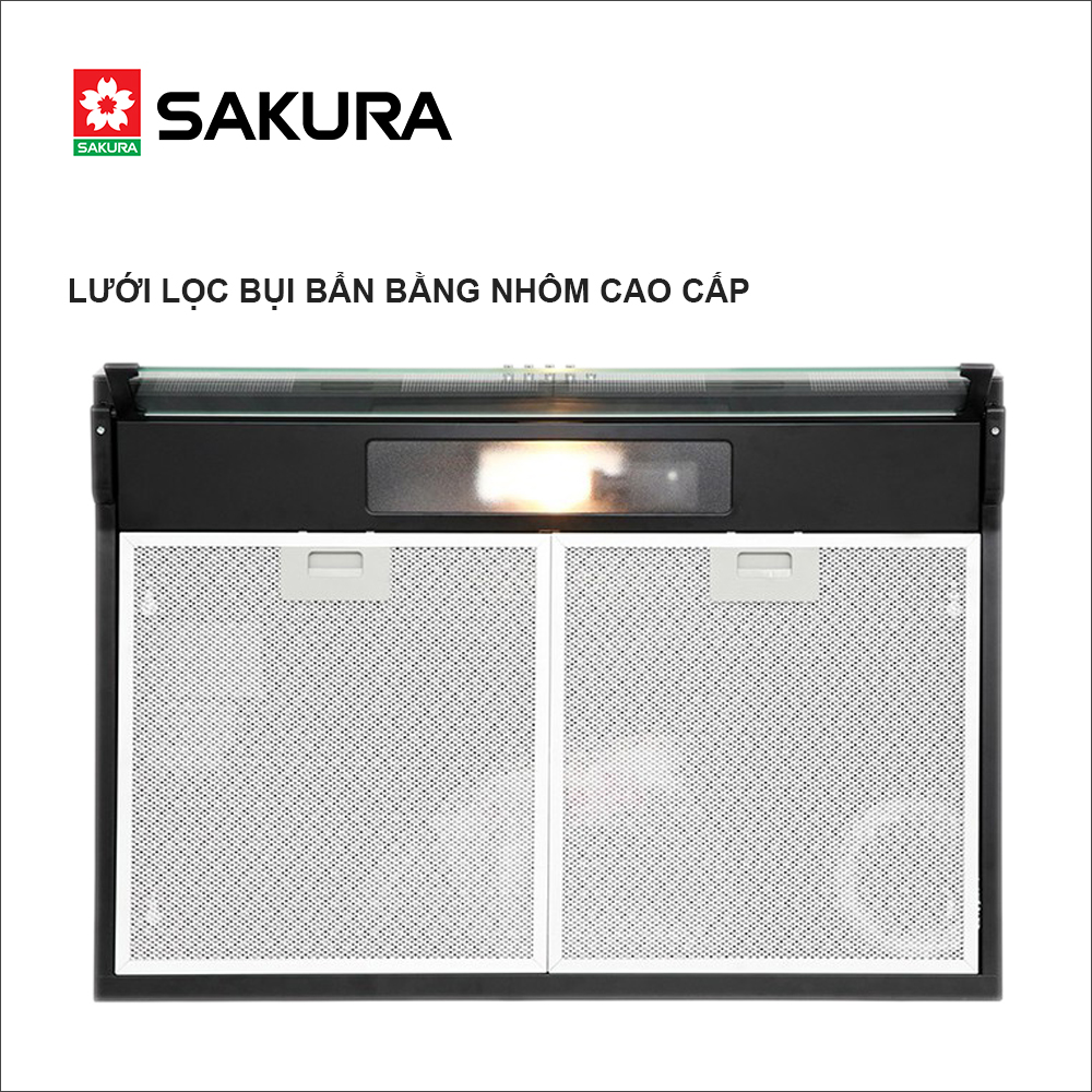 -Máy hút khói SAKURA, treo tủ kệ -Hút - xả trực tiếp bằng ống thoát -Khử mùi bằng than hoạt tính -Thân máy inox -2 motor, 3 nấc tốc độ, 1 đèn chiếu sáng -Lưới