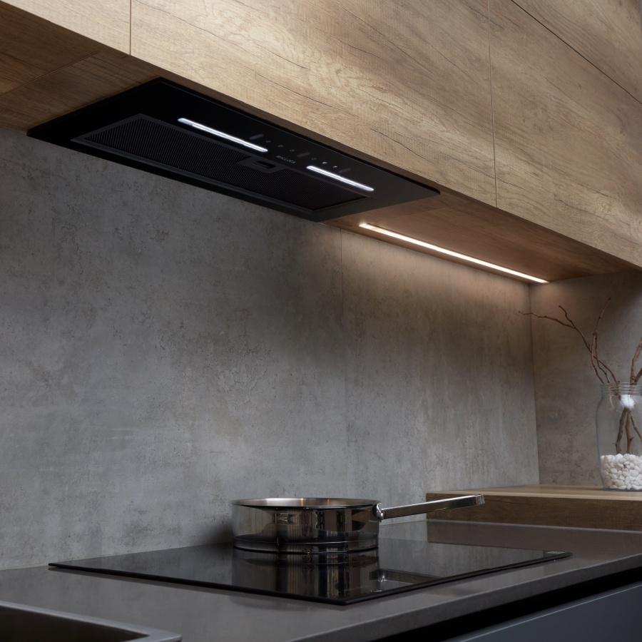 - Máy hút khói dạng âm tủ, dễ lắp đặt, bếp trở nên hiện đại và đẹp mắt hơn.