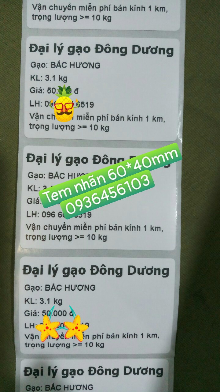 Công nghệ: in nhiệt trực tiếp (in bằng giấy decal cảm nhiệt)