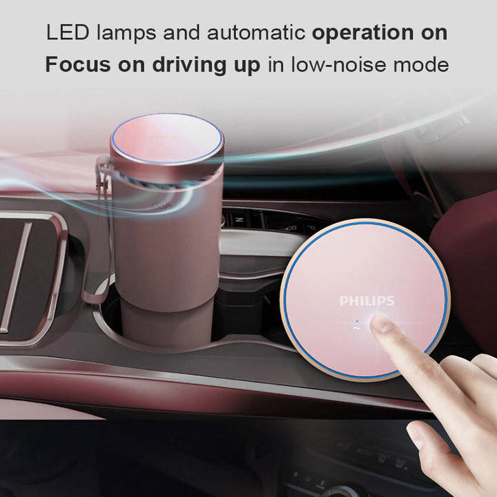 Máy khử mùi, lọc không khí dạng cốc trên xe ô tô cao cấp Philips GP5601 công suất 5,5W tích hợp 5 công nghệ tiên tiến bảo vệ không khí trong xe Philips là tên