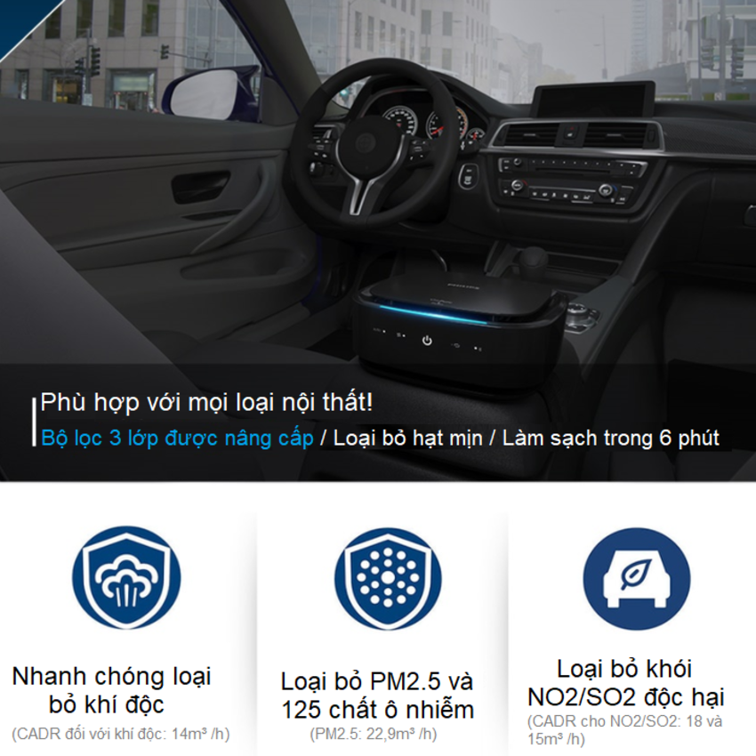 Máy khử mùi, lọc không khí trên xe ô tô cao cấp nhập khẩu Philips GP7101 Philips là tên gọi phổ biến nhất của Koninklijke Philips Electronics N.V. (Royal Philips Electronics), là một công ty