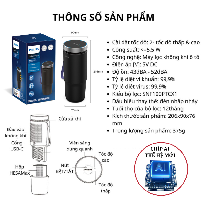 Mua tại TiktokMáy khủ mùi và lọc không khí trên ô tô dạng cốc thương hiệu Philips Hà Lan cao cấp GP5601 và GP5602 - Hàng Nhập Khẩu Philips là một công ty điện tử đa quốc gia Hà Lan và là một trong những công ty điện tử lớn nhất thế giới. Không chỉ sản xuất điện tử tiêu dùng, chiếu sáng, thiết bị y tế… Mà còn sản xuất các loại tẩu sạc và máy khử mùi, lọc không khí trên ô tô nổi tiếng. Đặc biệt là máy lọc không khí dạng cốc trên xe ô tô Philips GP5601 và GP5602