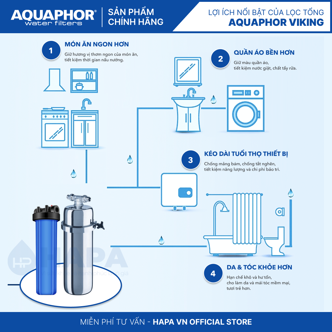 - Máy Lọc Nước Đầu Nguồn AQUAPHOR VIKING phù hợp sử dụng cho Chung cư, Căn hộ, Nhà Phố, Biệt Thự, Villa, Quán cà phê, Nhà hàng, Penthouse, Tiệm Spa, Phòng Gym, Khách sạn, Vườn ươm, Bệnh viện, Trường học, Nhà trẻ, Căn-tin...