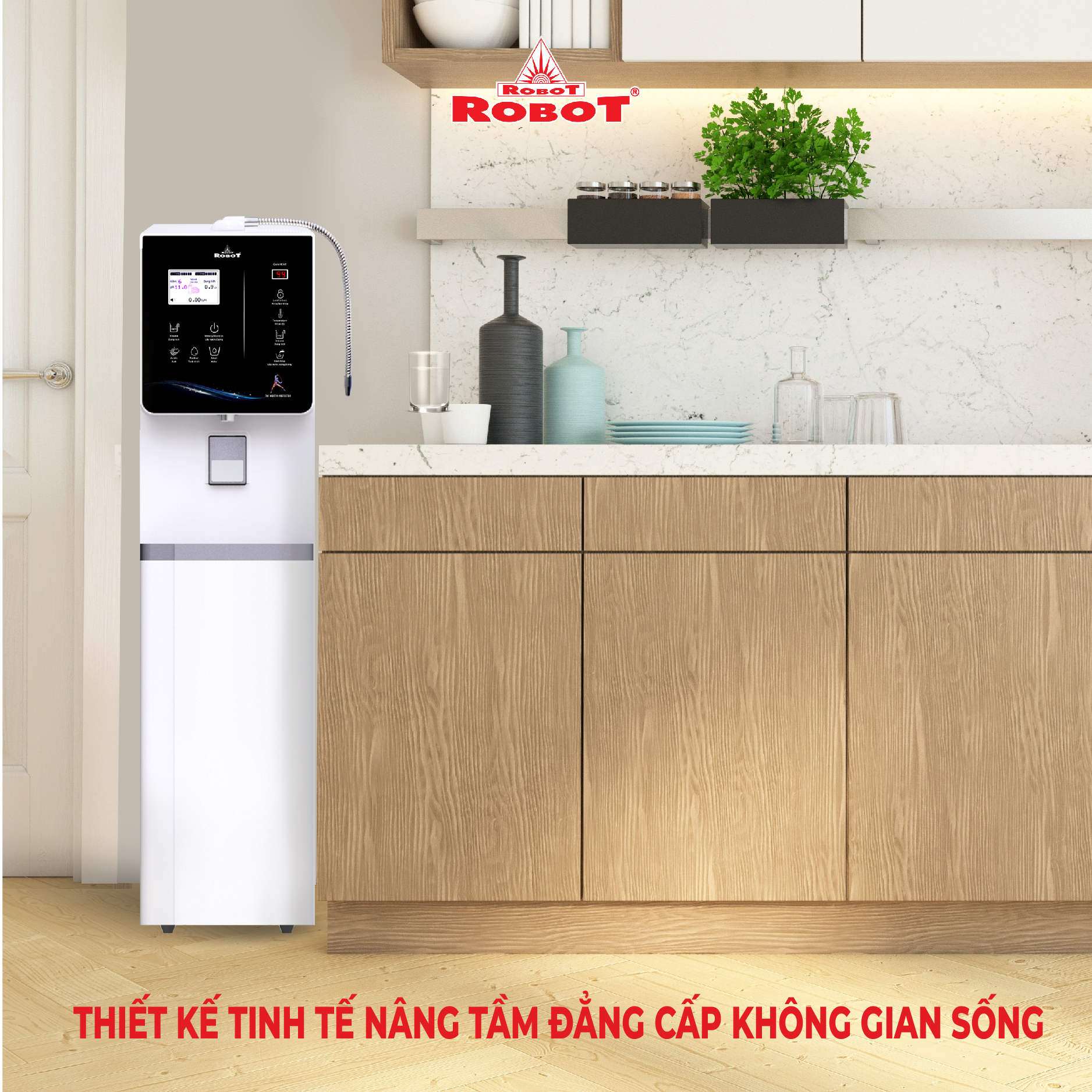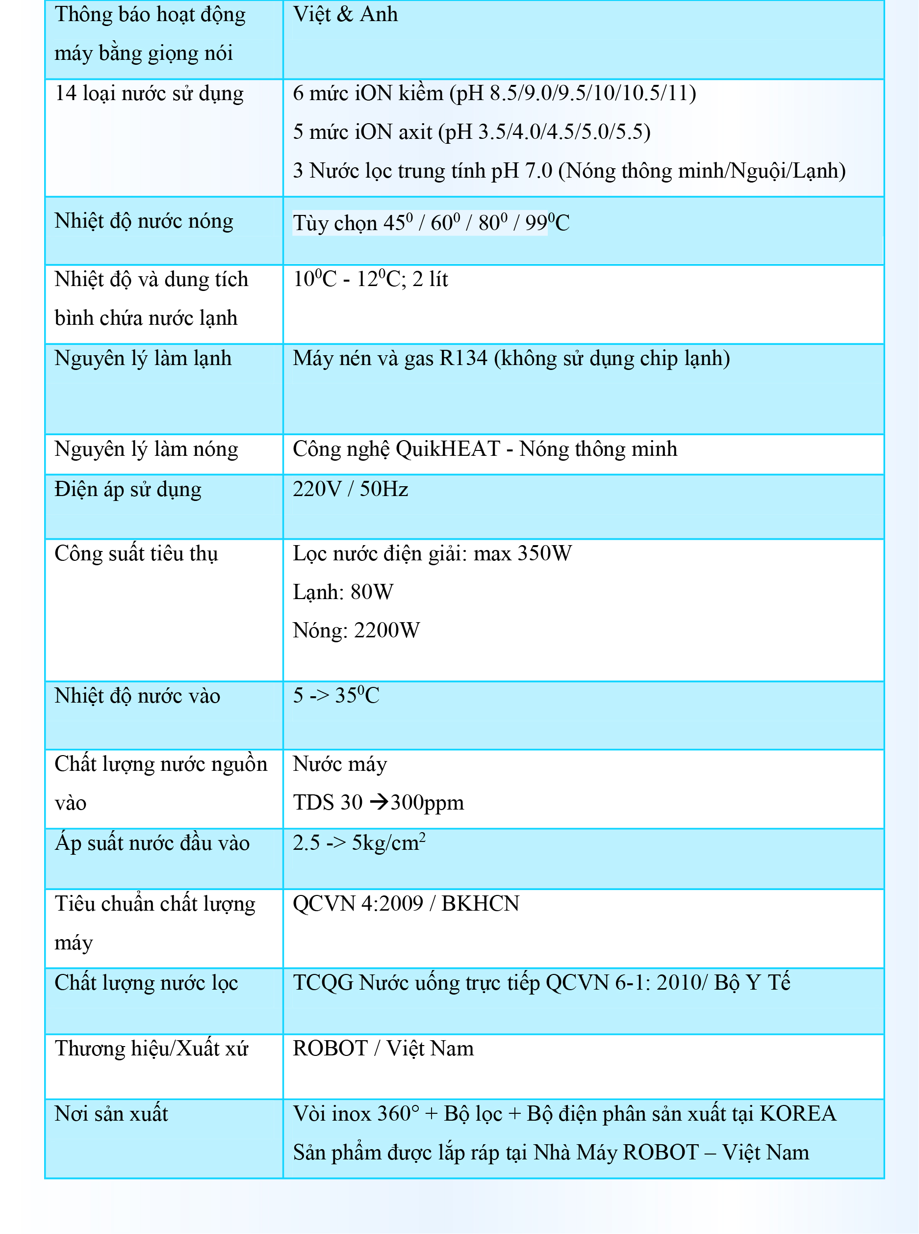 Với mong muốn nhiều gia đình Việt có thể sử dụng nước điện giải iON kiềm với chi phí hợp lý để bảo vệ sức khỏe, sắc đẹp & nâng cao chất lượng cuộc sống, ROBOT mang đến sản phẩm “Chất lượng Quốc tế - Giá thành Việt Nam”, phù hợp với mức sống của nhiều người. Tiết kiệm cho người tiêu dùng đến hơn một nửa chí phí so với máy nhập khẩu chỉ từ 30 – 50%, nhưng sở hữu nhiều ưu điểm, tính năng vượt trội, chất lượng cao.