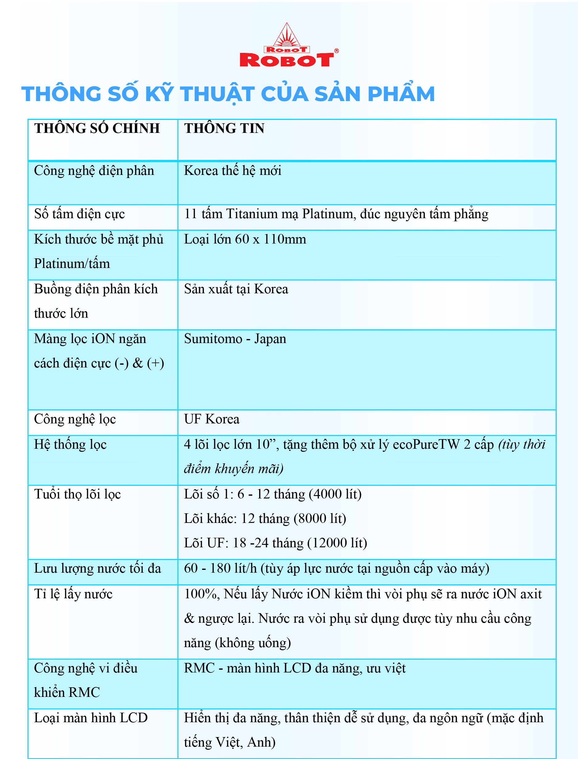 Máy lọc nước điện giải iON kiềm ROBOT ionQueen 1113 là sản phẩm được sản xuất với công nghệ tiên tiến, cao cấp trang bị đến 11 tấm điện cực lớn nhất, có khả năng tạo ra đến 13 loại nước đa chức năng: