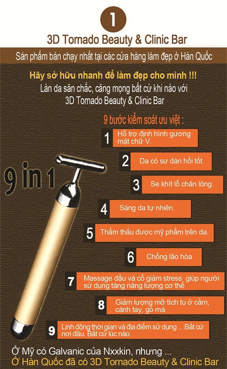- Máy Massage 3D Tornado Beauty & Clinic Bar đa chức năng mang lại hiệu quả trong dưỡng da và phòng chống lão hóa. Bên cạnh đó máy còn có thể mát xa da đầu,