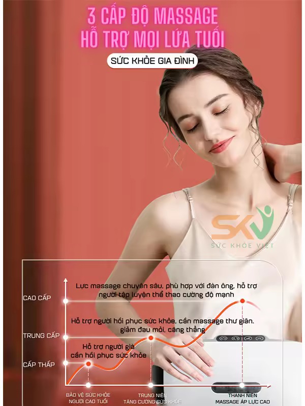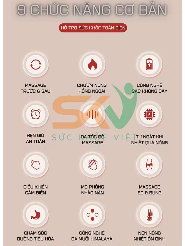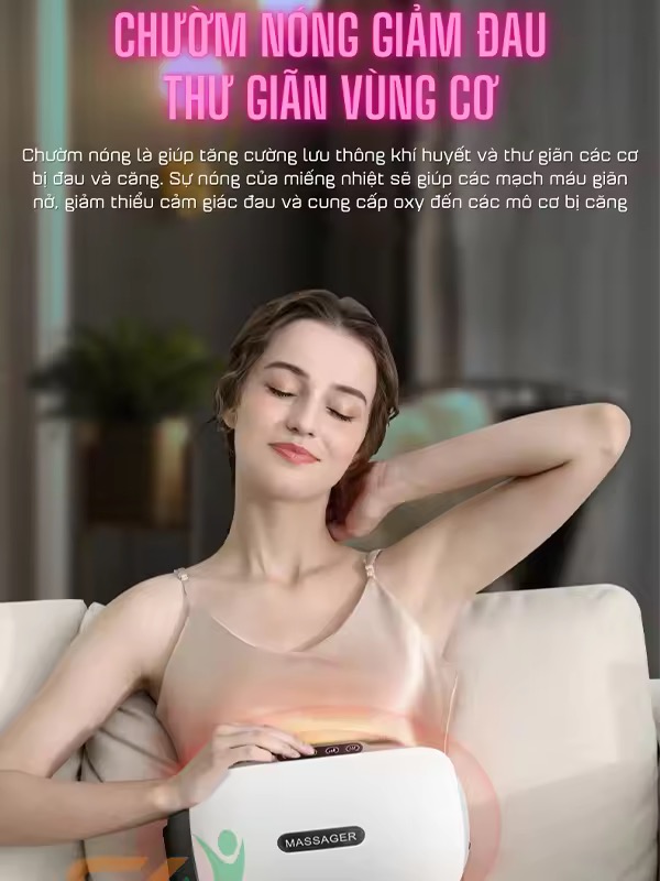 • Sản phẩm được sử dụng ở rất nhiều vị trí, vùng trên cơ thể như: bụng, lưng, vai, chân,... giúp hỗ trợ giảm đau mỏi, massage sâu kèm massage nhiệt mang lại cảm giác thoải mái, dễ chịu cho người dùng.