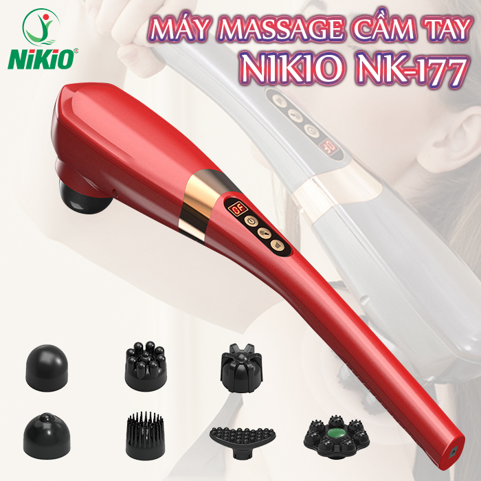 Máy massage cầm tay pin sạc cao cấp Nikio NK-177 - 7 đầu massage cán tay cầm dài có thể mát xa toàn thân tiện lợi và an toàn với pin sạc Nikio NK-177 là