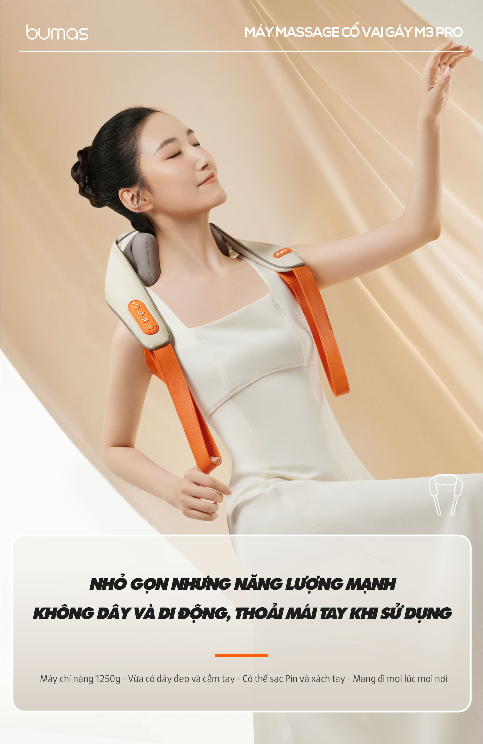 Máy Massage Cổ Vai Gáy M3 Pro Nâng Cấp Mới TÍNH NĂNG ĐẶC BIỆT CỦA SẢN PHẨM: KHÔNG GIỚI HẠN HOẠT ĐỘNG: Nâng cấp dây đeo vai kết hợp tay kéo dễ dàng