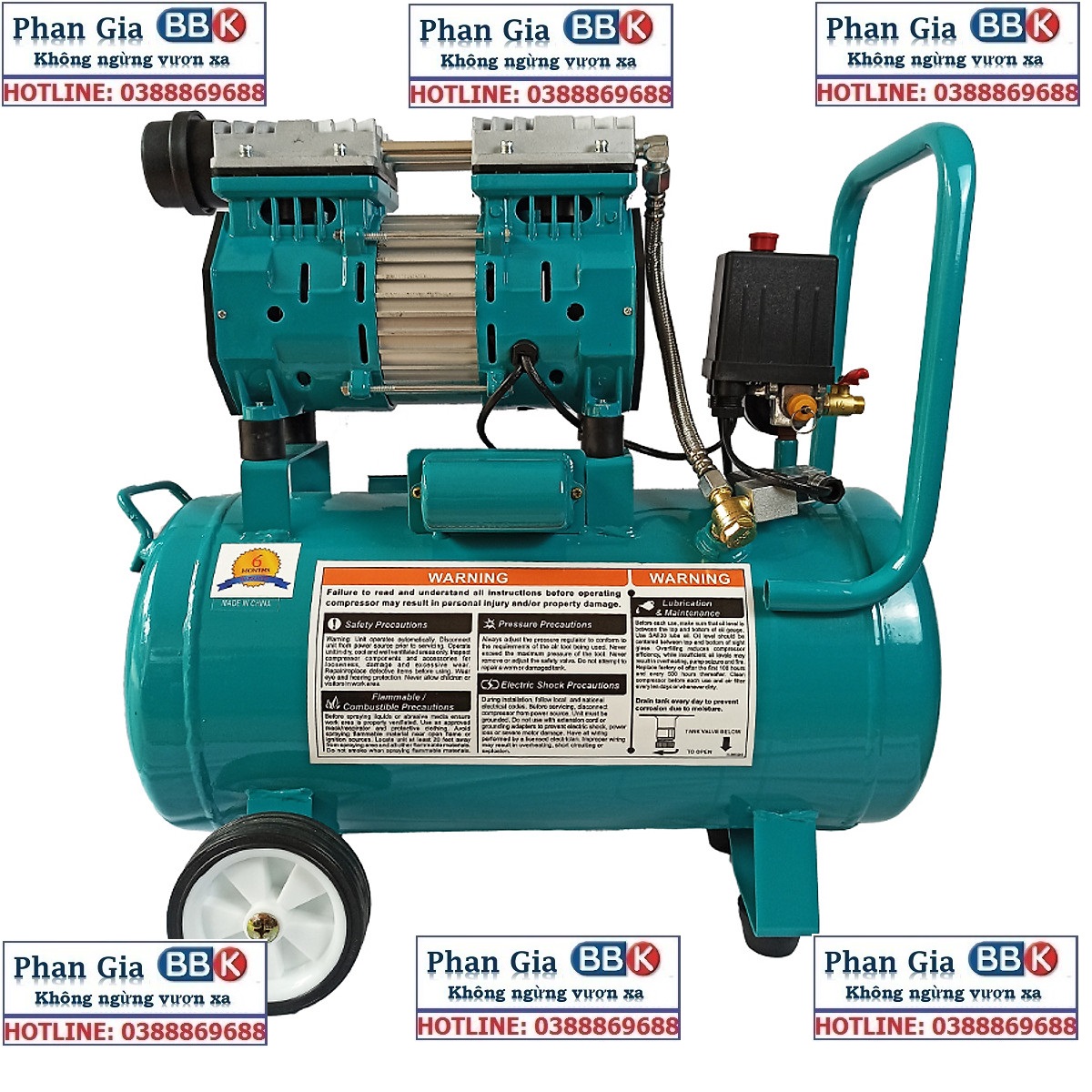 Máy nén khí mini Boshun NK15BL 8 bar không gây ồn, Chuyên dùng bơm hơi, Phun sơn, Bơm hơi xe