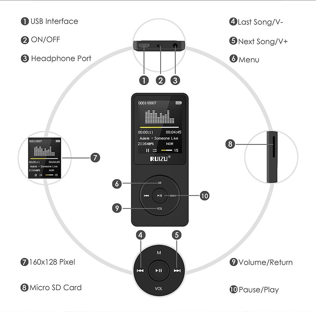 Ruizu D29 là máy nghe nhạc lossless sử dụng công nghệ tiết kiệm điện năng và tối ưu hiệu suất truyền tải âm thanh. Máy có khả năng thể hiện các dải tần âm thanh thấp ở