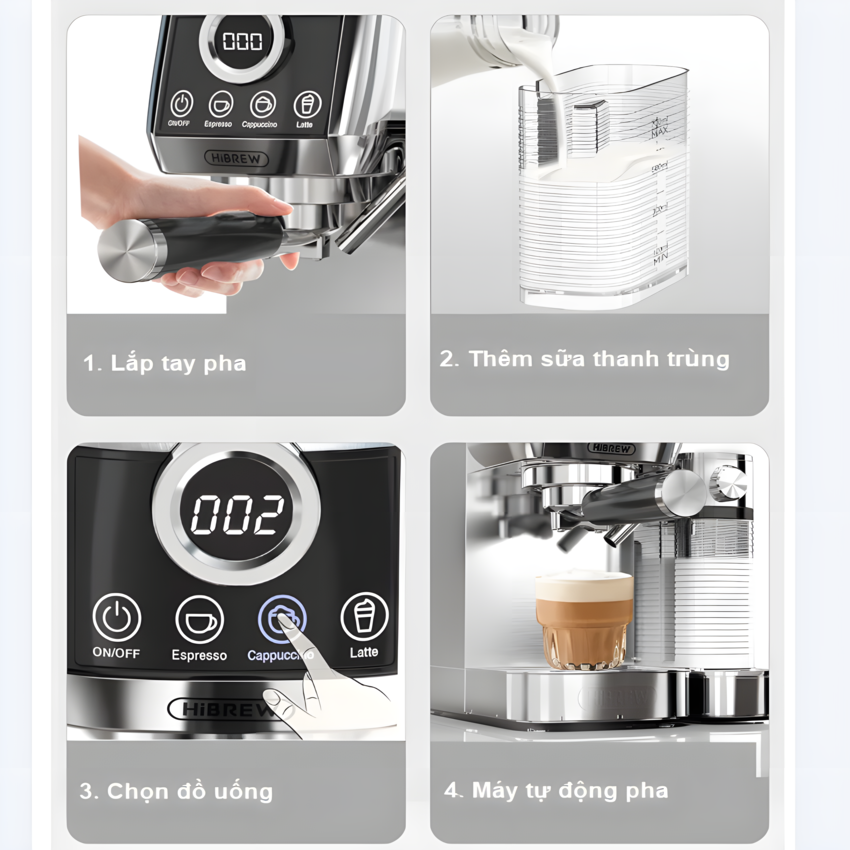 Máy pha cà phê Espresso bán tự động Espresso, Latte, Cappuccino thương hiệu HiBREW H13A