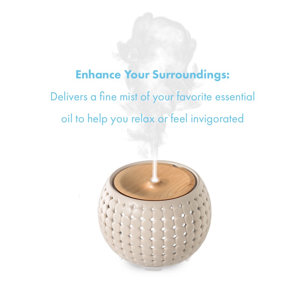 • Máy khuếch tán hương thơm siêu âm Ellia Gather có công nghệ siêu âm, tần số cao, chuyển đổi nước và tinh dầu thành một màn sương mịn có thể phân tán đều vào không khí, sử dụng thuận tiện hiệu quả cho bất kỳ căn phòng nào. Bộ khuếch tán cũng có một lợi ích phụ là làm dịu độ ẩm để giảm bớt không khí khô có thể ảnh hưởng đến sức khỏe của bạn. Bộ khuếch tán này được chế tạo cẩn thận từ gốm và gỗ. Phù hợp hầu hết mọi kiểu trang trí với thiết kế giỏ đan thời trang.